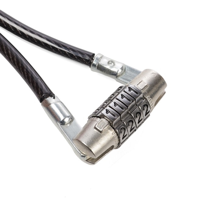 Замок предназначен для защиты от угона велосипедов, самокатов, колясок, мотоциклов, скутеров. Оплетка из ПВХ защищает трос от влаги.