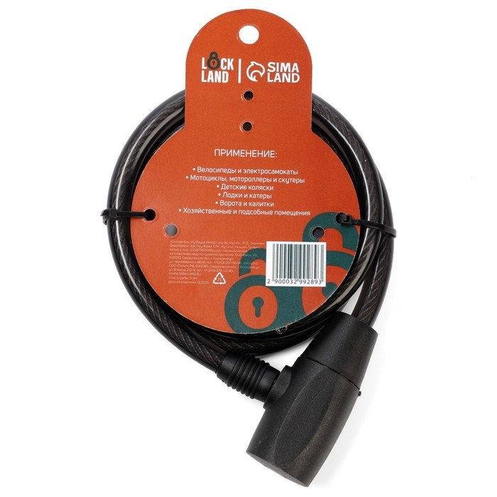 Замок навесной велосипедный LOCKLAND, 12х1000 мм, перфорированный ключ с пластиковой ручкой