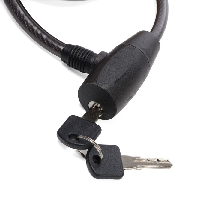Замок предназначен для защиты от угона велосипедов, самокатов, колясок, мотоциклов, скутеров. Оплетка из ПВХ защищает трос от влаги.