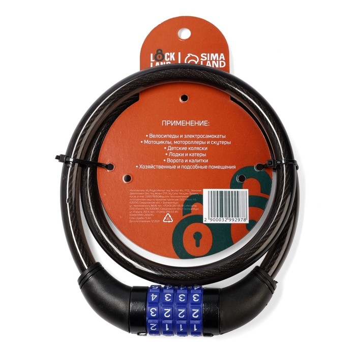 Замок навесной велосипедный LOCKLAND, кодовый, 12х800 мм