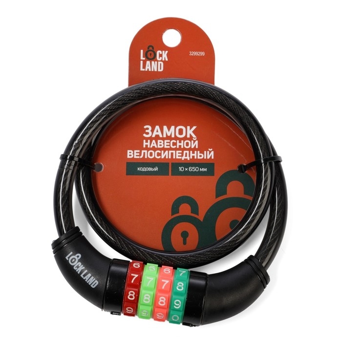 Замок навесной велосипедный LOCKLAND, кодовый, 10х650 мм