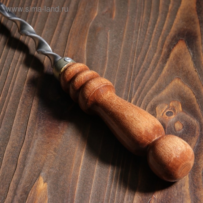 Шампур с деревянной ручкой, рабочая длина - 40 см, ширина - 10 мм, толщина - 3 мм с узором