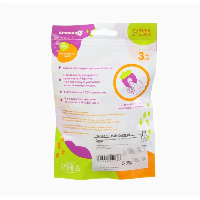 Прорезыватель силиконовый «На ножке», цвет МИКС, Крошка Я