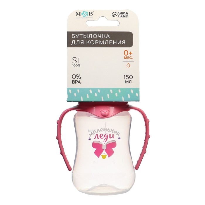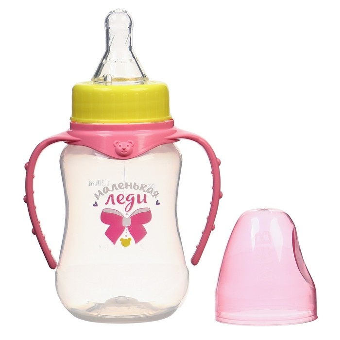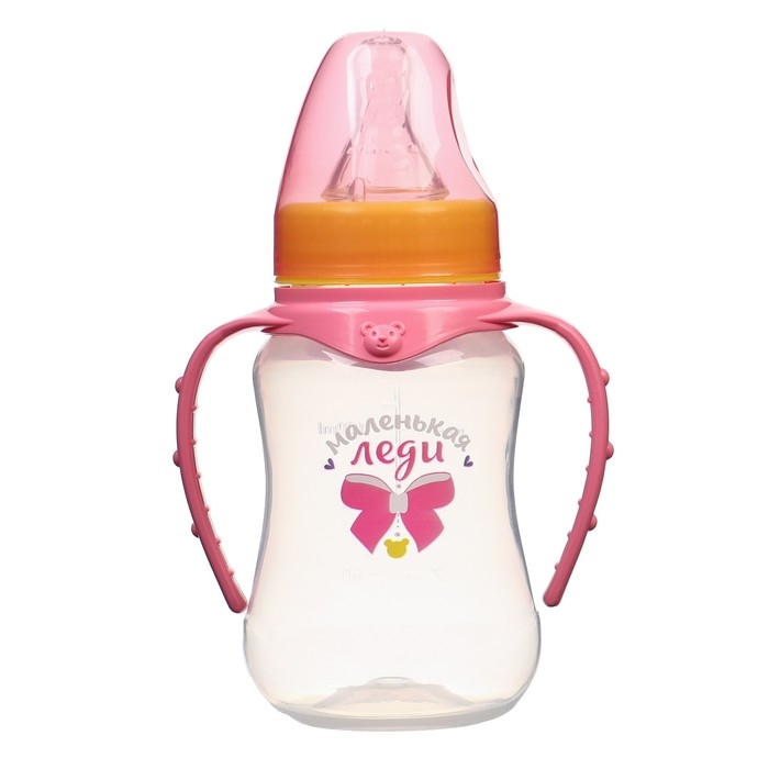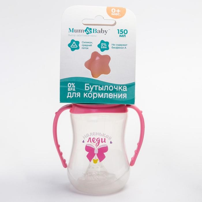 Бутылочка для кормления «Маленькая леди», классическое горло, приталенная, с ручками, 150 мл., от 0 мес., цвет розовый