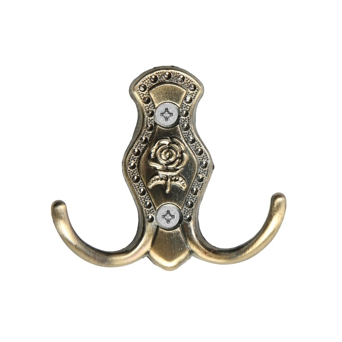 Крючок мебельный ТУНДРА TKD023, двухрожковый, бронза