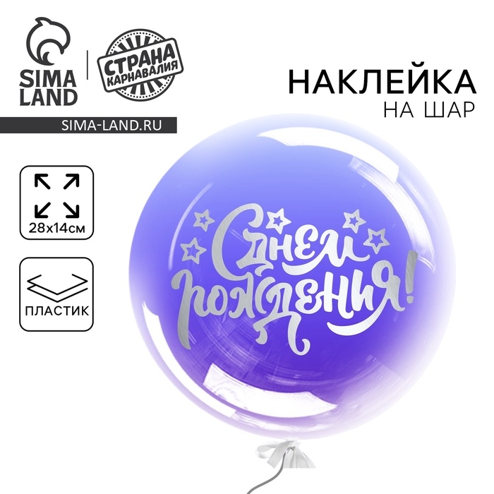 Наклейка на полимерные шары «С Днём Рождения», цвет белый, 14 х 28 см