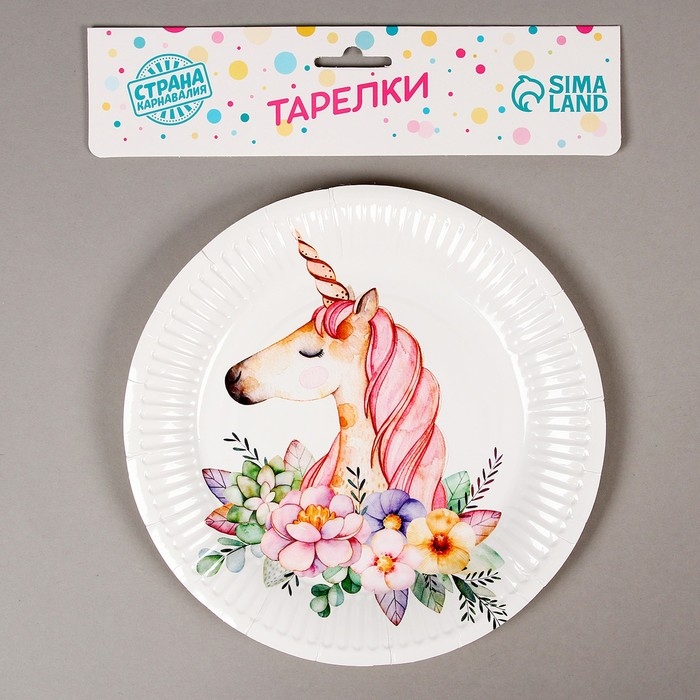 Тарелка бумажная одноразовая «Единорог», 18 см, набор 6 шт.