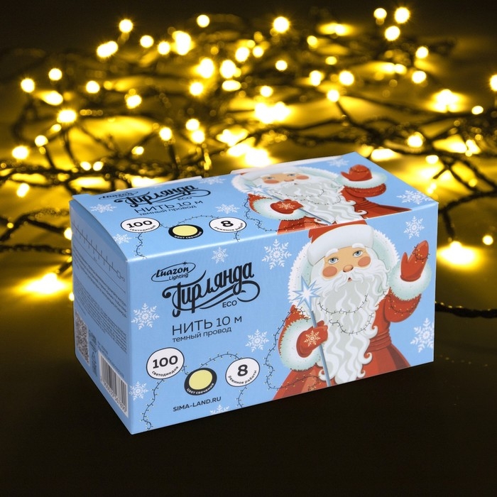 Гирлянда «Нить» 10 м, IP20, тёмная нить, 100 LED, свечение тёплое белое, 8 режимов, 220 В