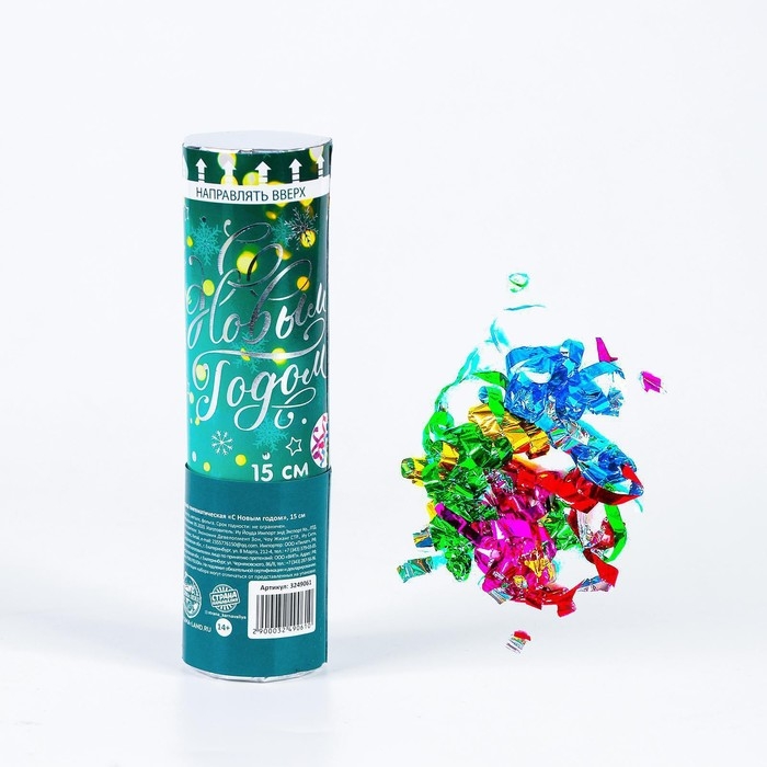 Новогодняя пневматическая хлопушка «С Новым Годом», фольга-серпантин, 15 см