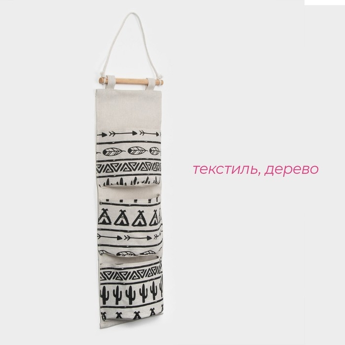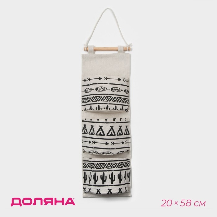 Органайзер подвесной с карманами Доляна «Мексика», 3 отделения, 20×58 см, цвет белый