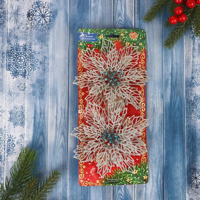 Украшение ёлочное "Ажурный цветок" (набор 2 шт) 14 см, серебро