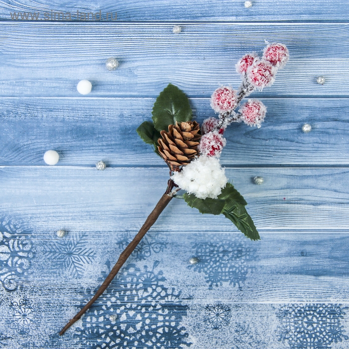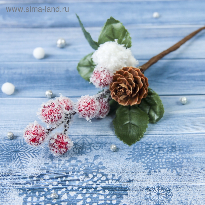Декор "Зимние грезы" красные ягодки шишка снежок, 18 см