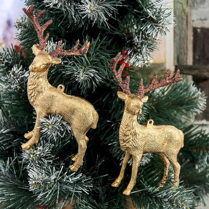 Украшение ёлочное "Благородный олень" (набор 2 шт) 8х15 см, золото
