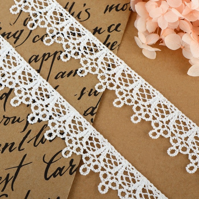 Кружево гипюровое, 35 мм × 9 ± 0,5 м, цвет белый