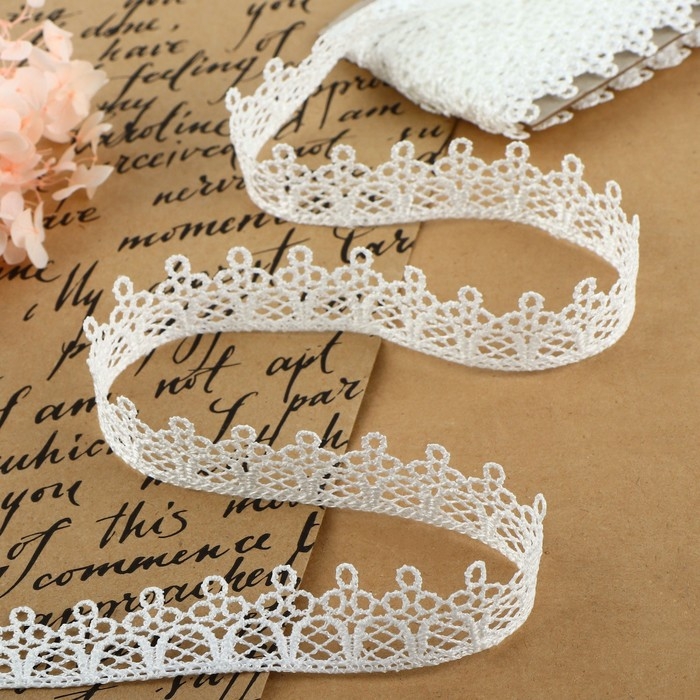Кружево гипюровое, 20 мм × 9 ± 0,5 м, цвет белый