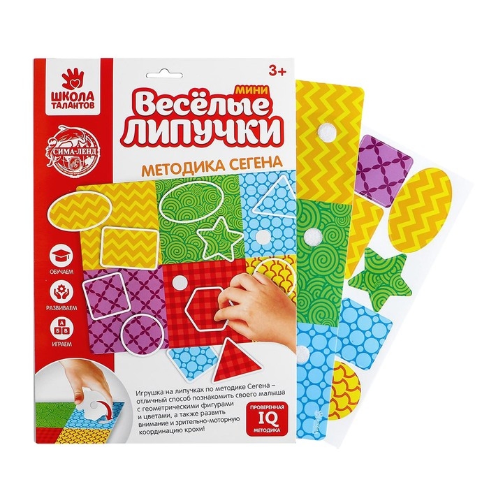 Игра на липучках, конструктор "Изучаем формы по методике Сегена", Весёлые липучки МИНИ, 12 деталей