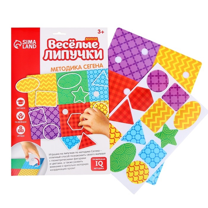 Игра на липучках по методике Сегена - отличный способ познакомить малыша с геометрическими фигурами и цветами, а также развить внимание и зрительно-моторную координацию крохи.