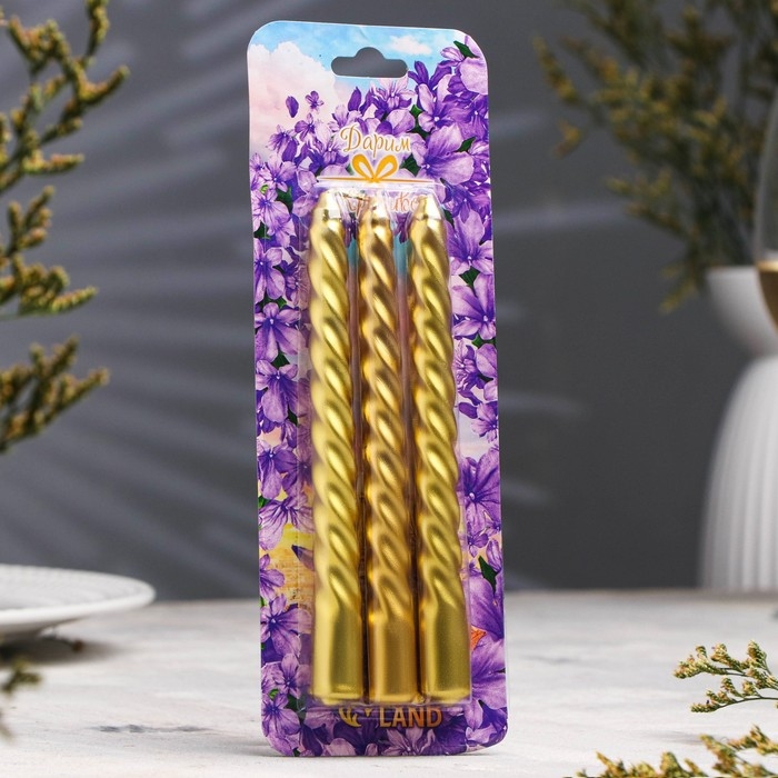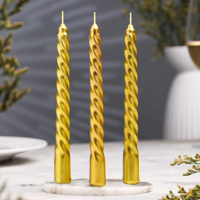 Набор свечей витых, 1,5х 15 см, 3 штуки, золотой блистер