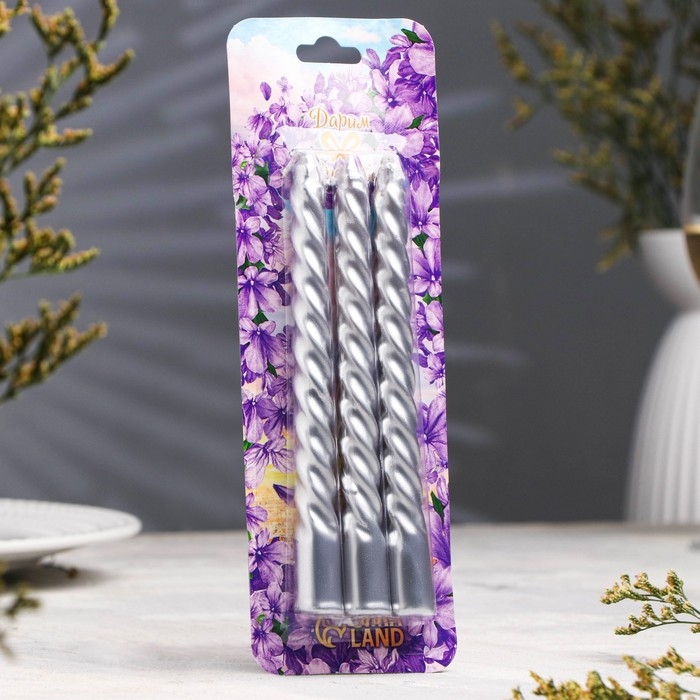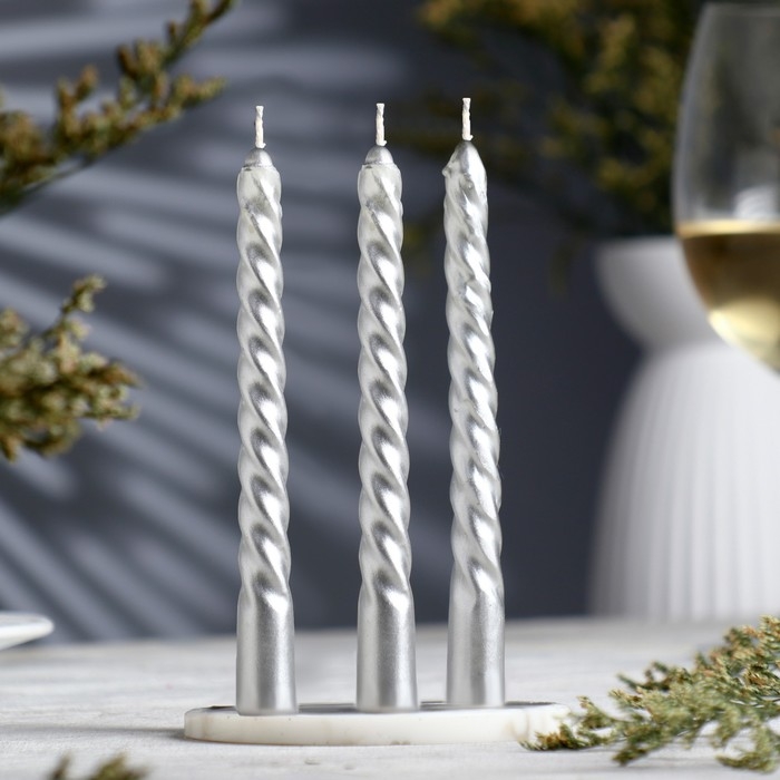 Набор свечей витых, 1,5х 15 см, 3 штуки, серебряный блистер