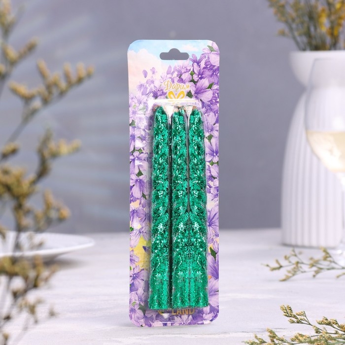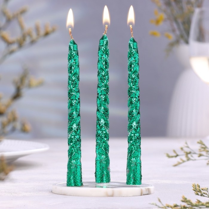 Набор свечей витых, 1,5х 15 см, 3 штуки, зелёный блистер