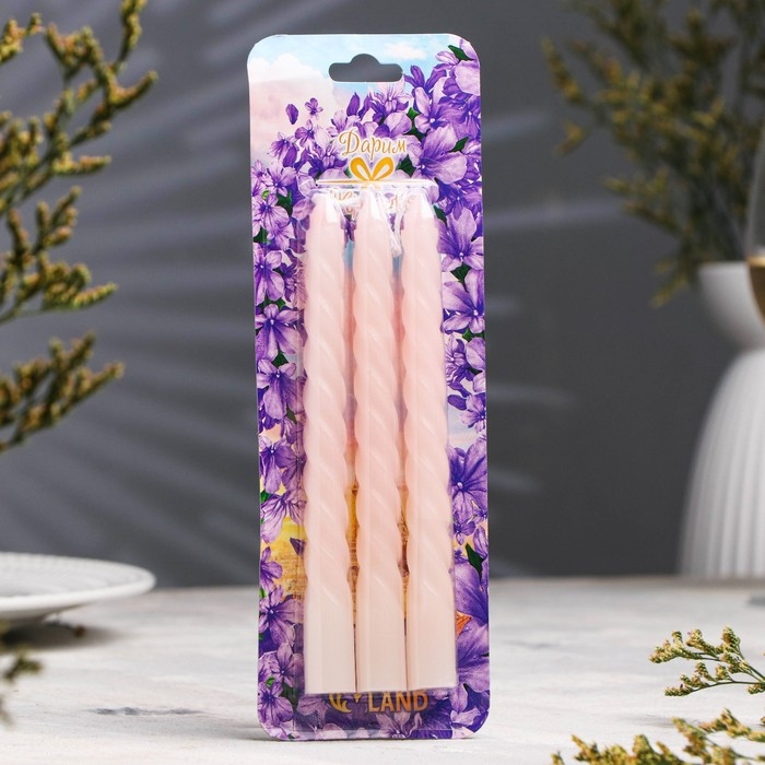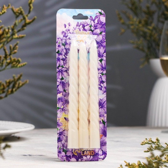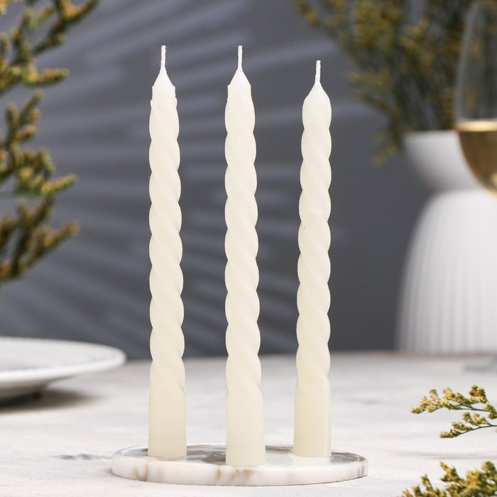 Набор свечей витых, 1,5х 15 см, 3 штуки, белый блистер
