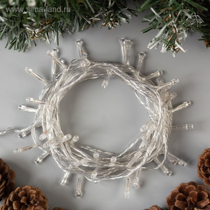 Гирлянда «Нить» 5 м с насадками «Ёжики белые», IP20, прозрачная нить, 30 LED, свечение белое, 8 режимов, 220 В