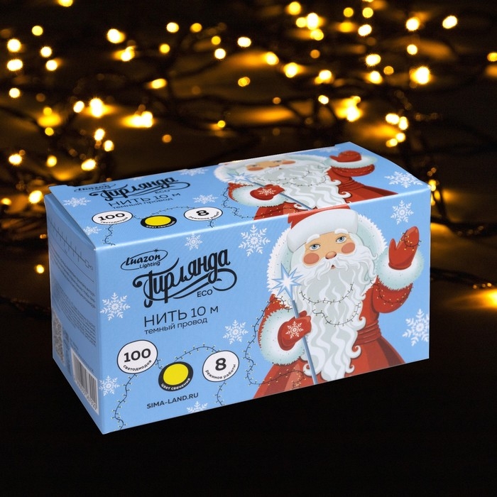 Гирлянда «Нить» 10 м, IP20, тёмная нить, 100 LED, свечение жёлтое, 8 режимов, 220 В