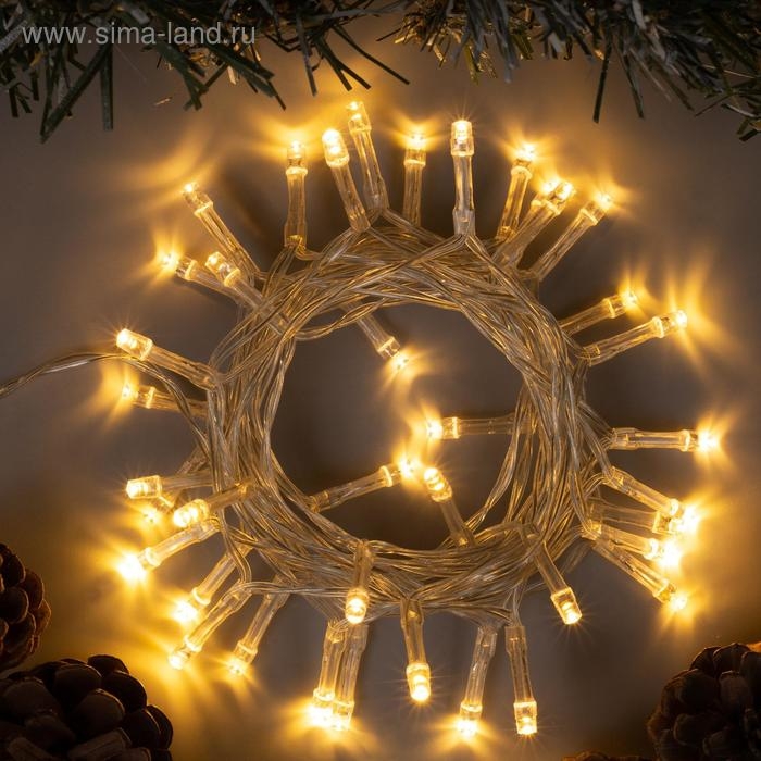 Гирлянда «Занавес» 2.5 × 0.65 м с насадками «Капли», IP20, прозрачная нить, 50 LED, свечение тёплое белое, 8 режимов, 220 В