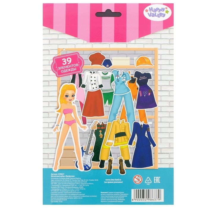 - 39 элементов одежды — разнообразные наряды и аксессуары помогут создать образы для самых разных профессий: врача, учителя, повара, пожарного и многих других