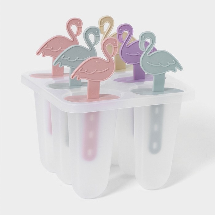 Форма для мороженого «Фламинго», 12,5×11,5×14,5 см, 6 ячеек, цвет прозрачный