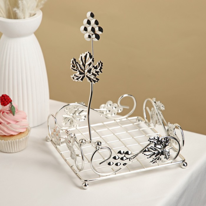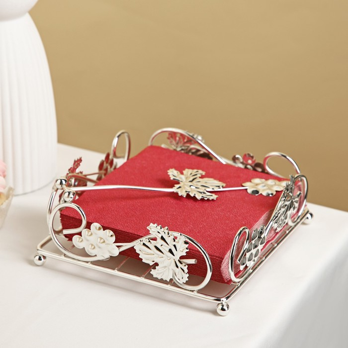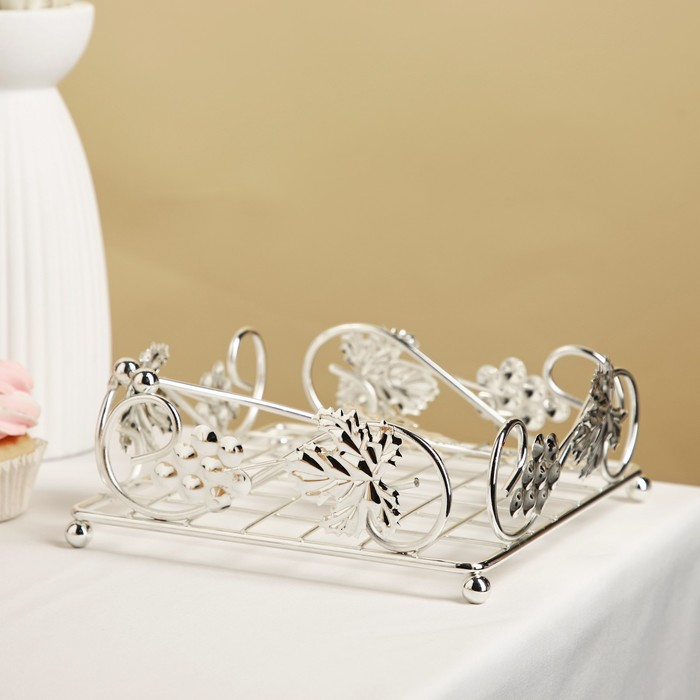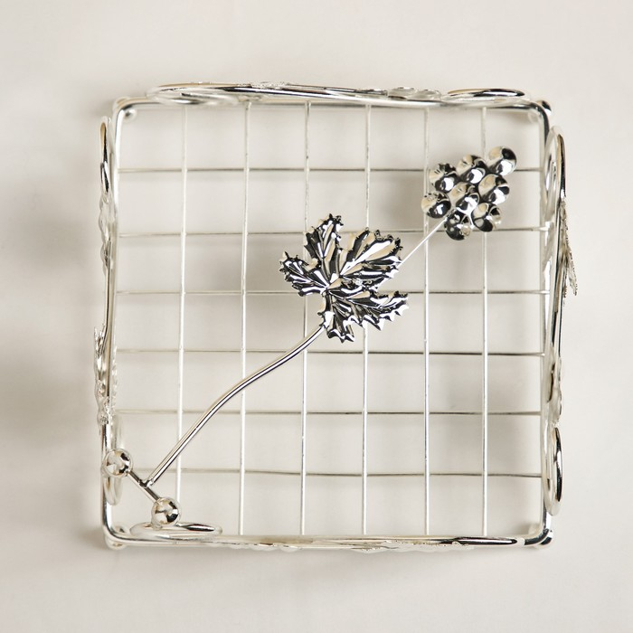 Салфетница «Виноград», декоративная, 13,5×13,5×7 см, цвет серебряный