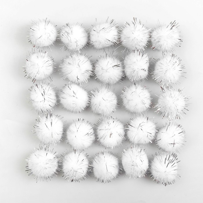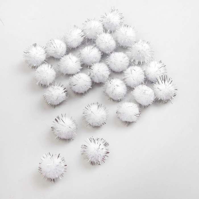 Текстильные детали для декора «Бомбошки», набор 25 шт., размер 1 шт. — 2 см, цвет серебро