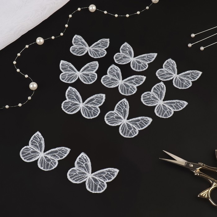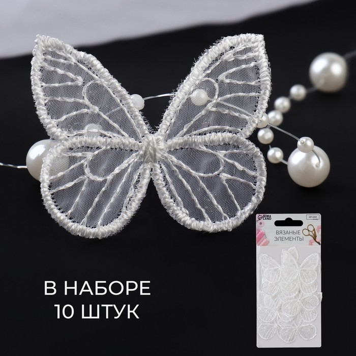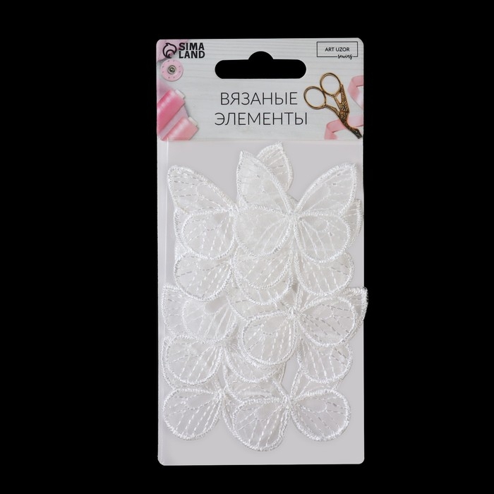 Вязаные элементы «Бабочки», 4 × 4 см, 10 шт, цвет белый