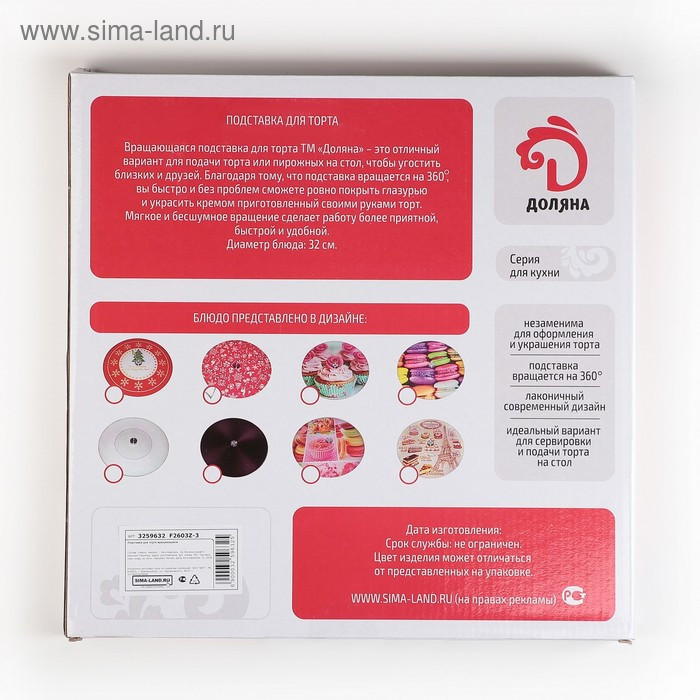 Подставка стеклянная для торта вращающаяся Доляна «Сладости», d=32 см ㅤ