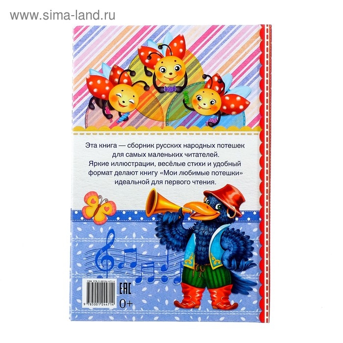 «Мои любимые потешки» — первая книжка малыша. В ней представлены русские народные стишки для самых маленьких читателей! Яркие иллюстрации, забавные потешки радуют ребёнка, а также успокаивают, учат говорить первые слова. С потешками весело играть, умываться, кушать и гулять!