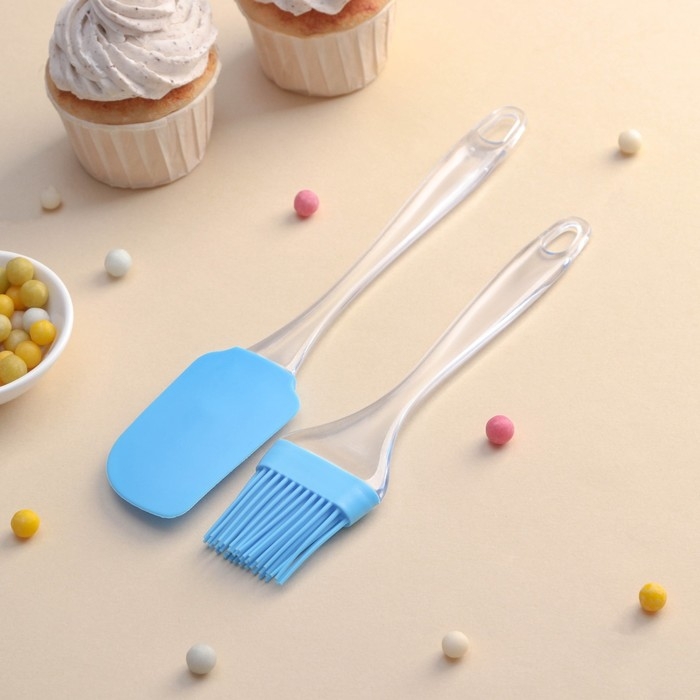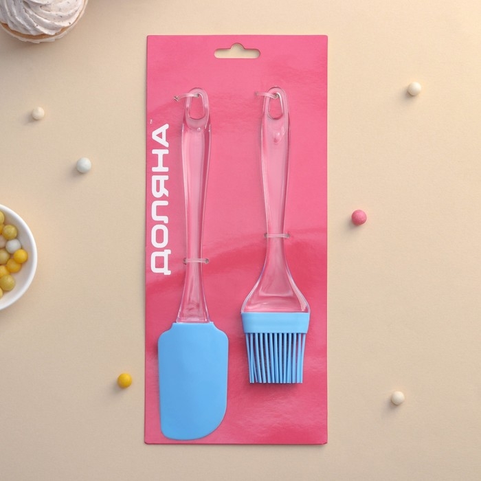 Набор для выпечки Доляна «Лёд», 2 предмета: лопатка 24 см, кисть 21 см, цвет синий