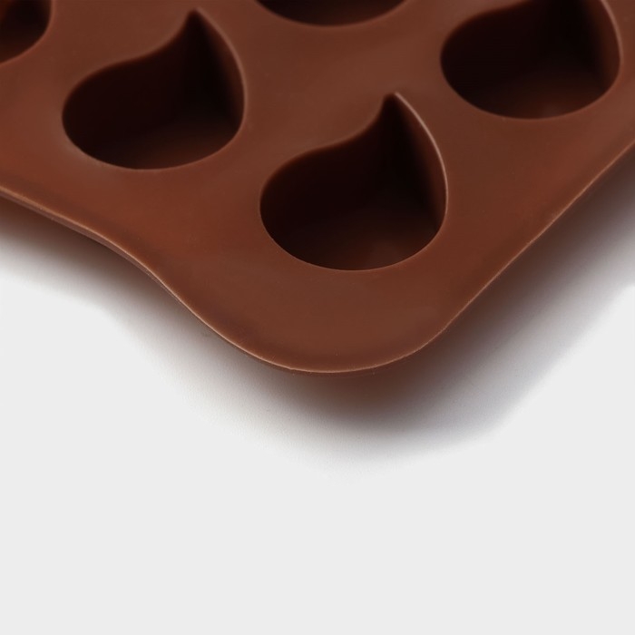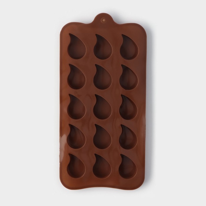 Форма для конфет и шоколада Доляна «Капелька», силикон, 21,5×10,4×1,3 см, 15 ячеек (2,3×3 см), цвет коричневый