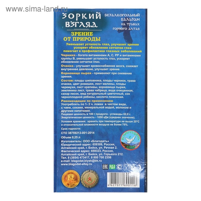 Медовый бальзам для зрения, алтайский, 250 мл