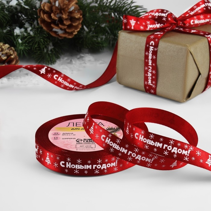 Новый год! Лента атласная «С Новым годом», 15 мм, 23 ± 1 м, цвет красный №33