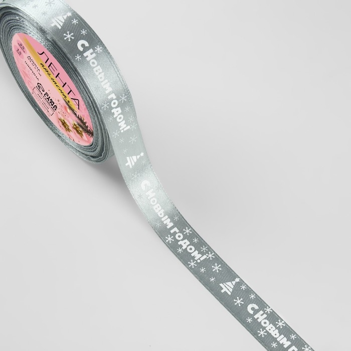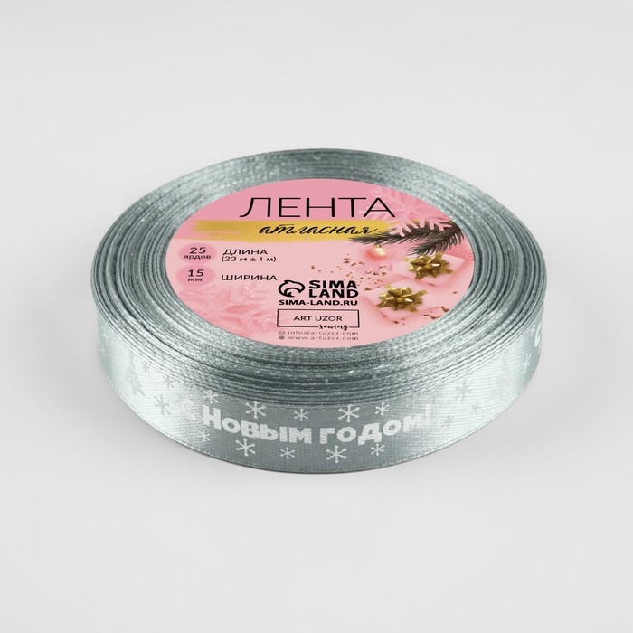 Новый год! Лента атласная «С Новым годом», 15 мм, 23 ± 1 м, цвет серый №59
