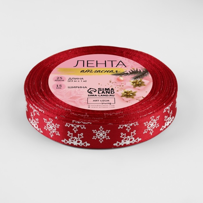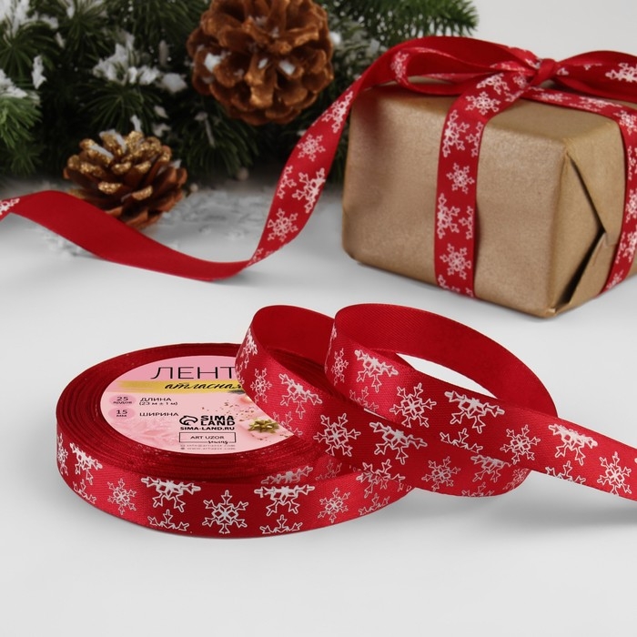 Новый год! Лента атласная «Снежинки», 15 мм, 23 ± 1 м, цвет красный №33