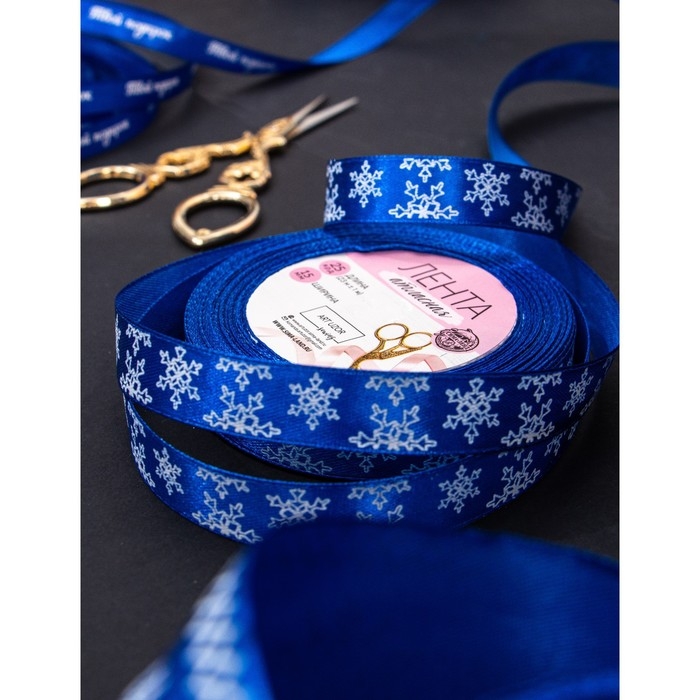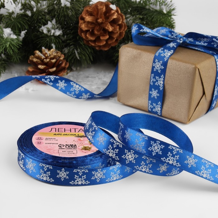 Новый год! Лента атласная «Снежинки», 15 мм, 23 ± 1 м, цвет синий №122