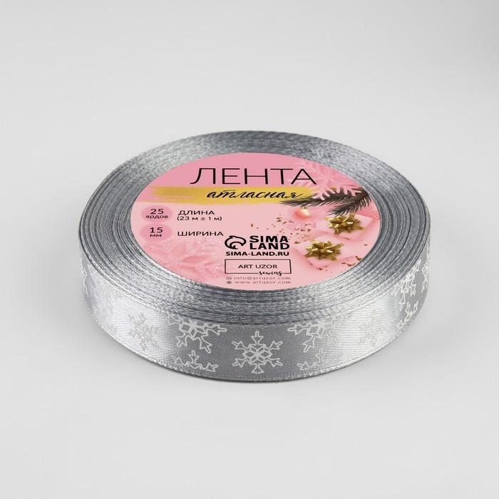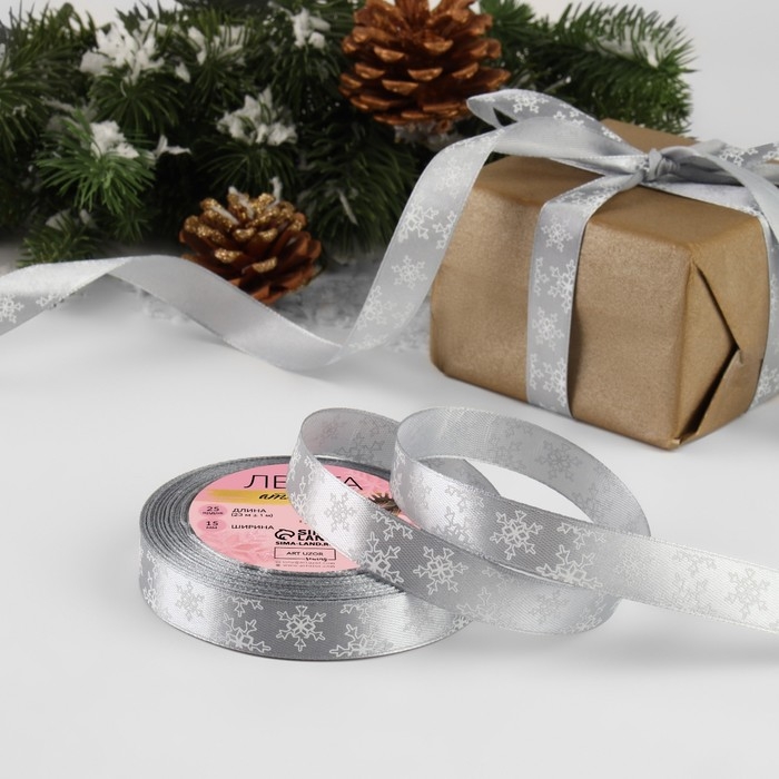 Новый год! Лента атласная «Снежинки», 15 мм, 23 ± 1 м, цвет серый №59