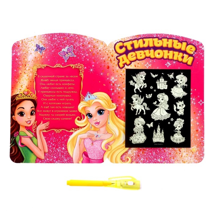 Набор для рисования светом «Чудесные принцессы», ручка с фонариком и невидимыми чернилами