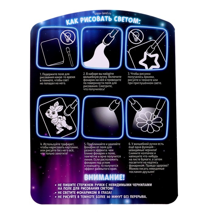 Набор для рисования светом «Удивительный космос», ручка с фонариком и невидимыми чернилами