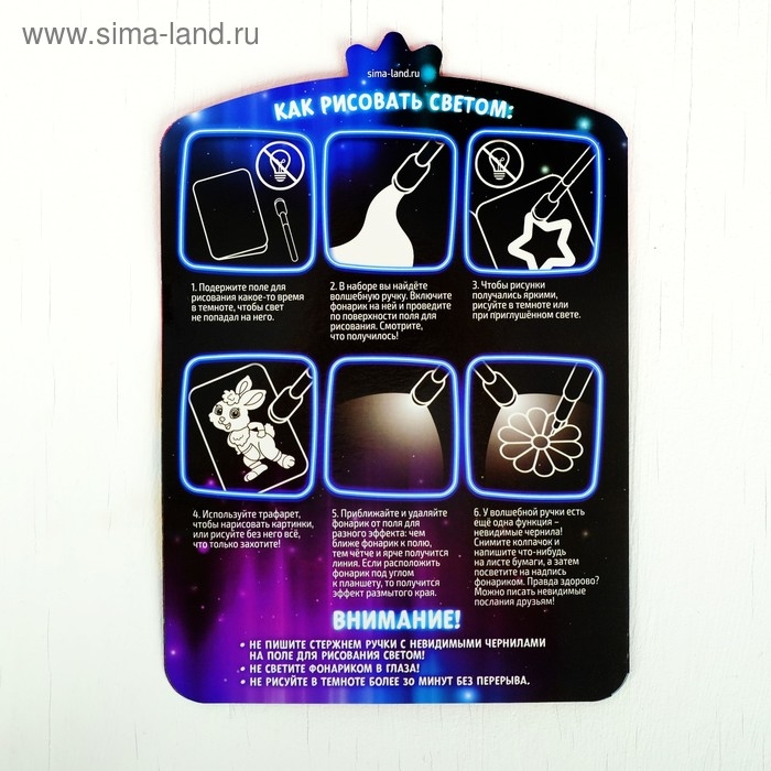 Набор для рисования светом «Маленький волшебник», ручка с фонариком и невидимыми чернилами