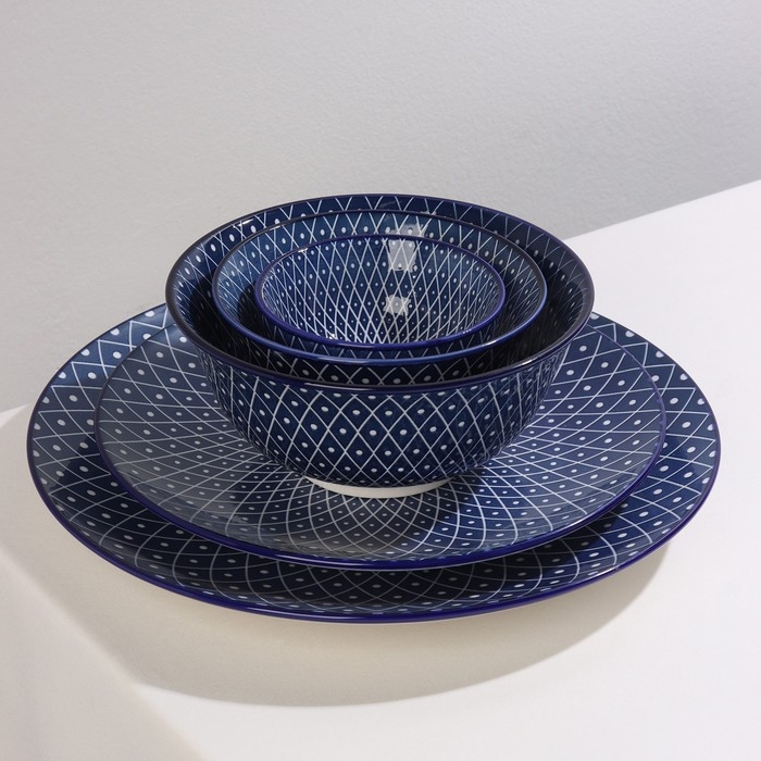 Серия посуды Доляна «Бодом» создана для идеальной сервировки вашего стола. Глубокий и насыщенный синий цвет в сочетании с белым орнаментом придают изделиям особенный вид. Посуда изготовлена из прочной керамики, устойчива к повреждениям и перепадам температур.