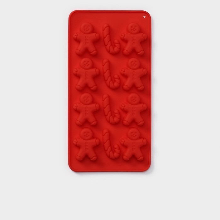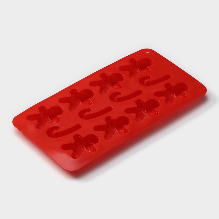 Форма для конфет и шоколада новогодняя Доляна «Карамельное чудо», силикон, 21×10 см, 12 ячеек (3,5×3,5 см), цвет красный