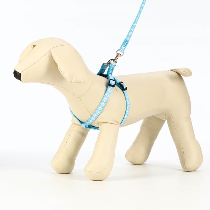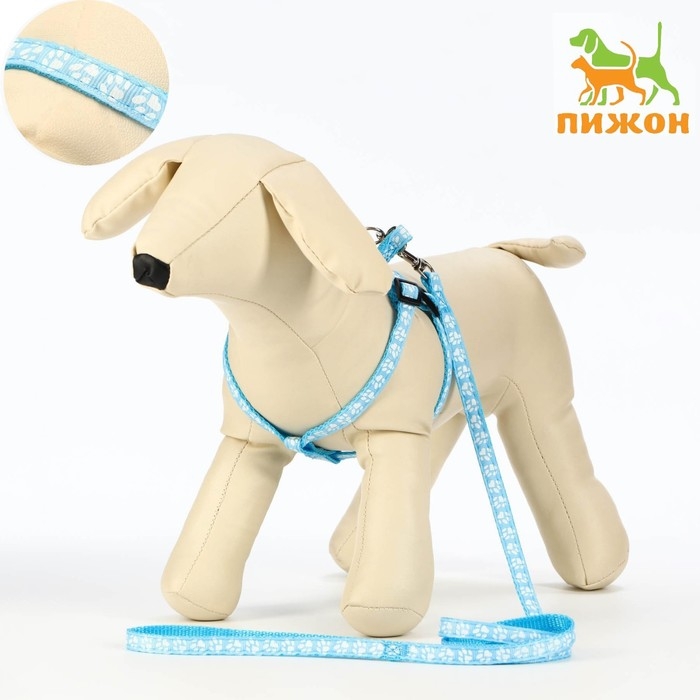 Комплект прошитый "Лапки", поводок 120 х 1 см, ОГ 23-35 см, голубой