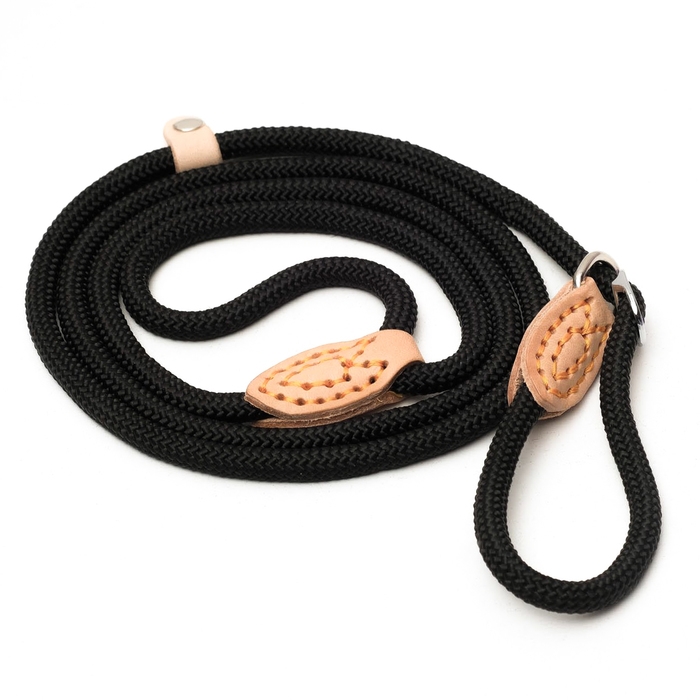 Поводок-удавка 150 см х 6 мм, полиэстер и натуральная кожа, чёрный